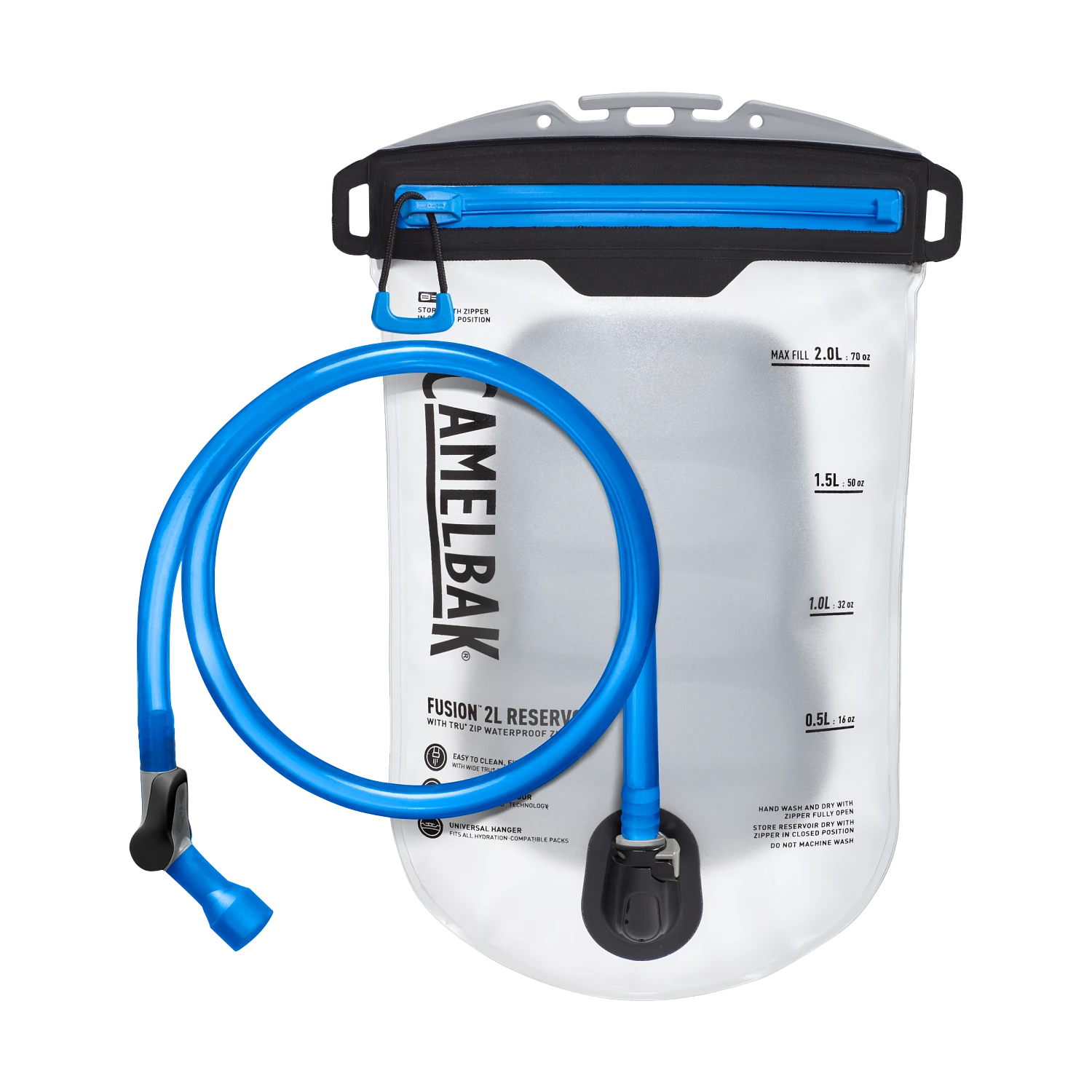 De CamelBak Fusion is een revolutionair drinkreservoir dat innovatie en gebruiksgemak combineert in een ultralicht ontwerp. Dankzij zijn Tru Zip™ waterdichte rits vul je het reservoir moeiteloos, zonder morsen of lekken. Met een gewicht dat 30% lichter is dan de CamelBak Crux, geniet je van maximale hydratie-efficiëntie tijdens fietsen, wandelen of trailrunning.